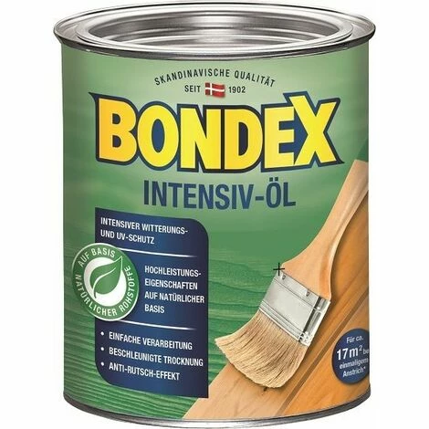 Intensiver Witterungs- und UV-Schutz mit Hochleistungseigenschaften auf Basis natürlicher Rohstoffe. Einfach Verarbeitung, beschleunigte Trocknung und Anti-Rutsch-Effekt. Auf Wasserbasis.Intensiv ÖlFarbton: DouglasieInhalt: 0,75 lfür Außennicht deckendErgiebigkeit: Ca. 45 ml/m2. 1 Liter reicht für bis zu 22 m2. Auf rauen und geriffelten Hölzern höherer Verbrauch. Genaue Menge durch Probeauftrag ermitteln.lasierendÜberstreichbar nach ca. 1 Stunde (23°C/ 60 % rel. Luftfeuchtigkeit). Begehbar nach ca. 1 Stunde. Bei niedrigen Temperaturen und/oder hoher Luftfeuchtigkeit wird die Trockenzeit verlängert. Probeanstrich durchführen.Um einwandfreie Trocknung zu erzielen: – für gute Belüftung sorgen. (Geringer Luftwechsel, z.B. durch dichte Stapelung, verzögert die Trocknung) – sind die empfohlenen Auftragsmengen unbedingt einzuhalten. (Zu hohe Schichtdicken führen zu einer deutlichen Trocknungsverzögerung!)Außen und Innen: Z. B. für Gartenmöbel, Pergolen, Terrassendielen, Wandpaneele,